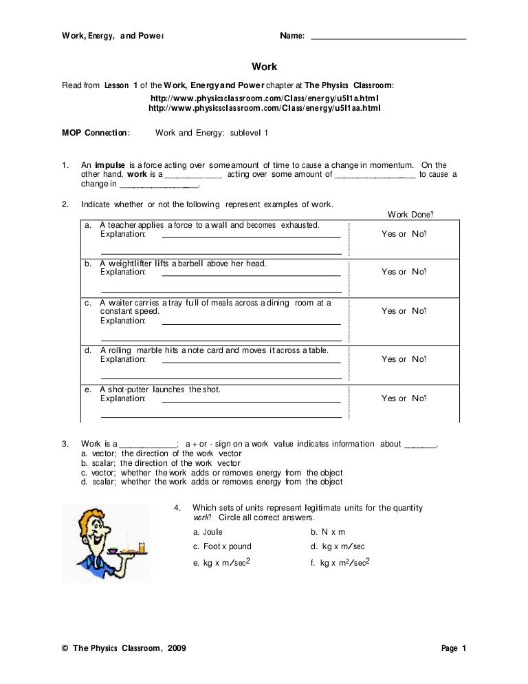 Power Worksheet Answers Physics Classroom - Preschool Worksheets